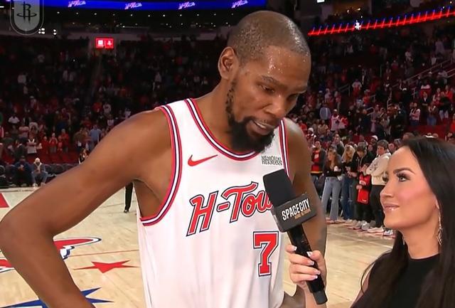 赛后,迎来生涯总得分里程碑的凯文-杜兰特接受了场边采访,他谈到了同样在本场百艾砍下赛季新高的贾巴里-史密斯。记者问道:“你一直在帮助年轻球员,贾巴里今天砍下赛季新高的32分,你和他一起训练很多,你喜欢他比赛中的哪些方面?”